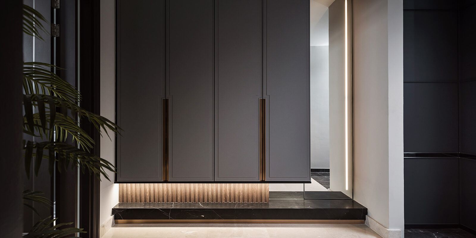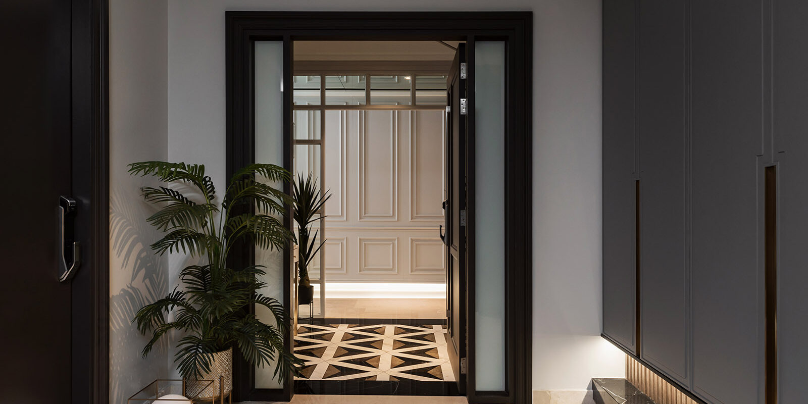 Meet ‘The Suite’: a single-level dwelling unit in Malaysia. The unit is owned by a young couple that pursues perfection and exquisiteness in their lifestyle, hence similar hashtags are anticipated to be manifesting in their inhabitable space. Vault Design Lab is honorably commissioned to transform the existing dwelling unit into the dwellers’ pursued lifestyle. Inspired by contemporary concepts, the interior spaces are sculptured into an intimate, elegant and yet sumptuous